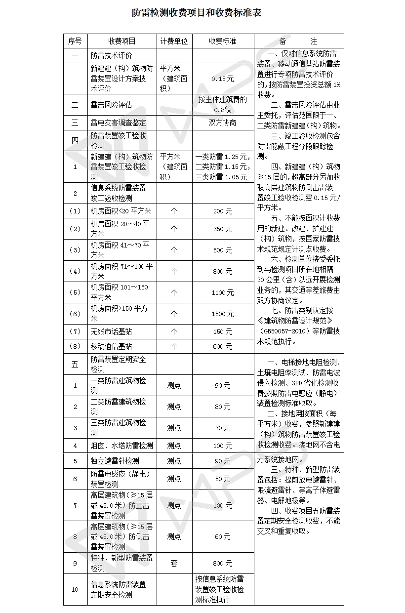 關(guān)于公示防雷裝置檢測服務(wù)收費標(biāo)準(zhǔn)的通知